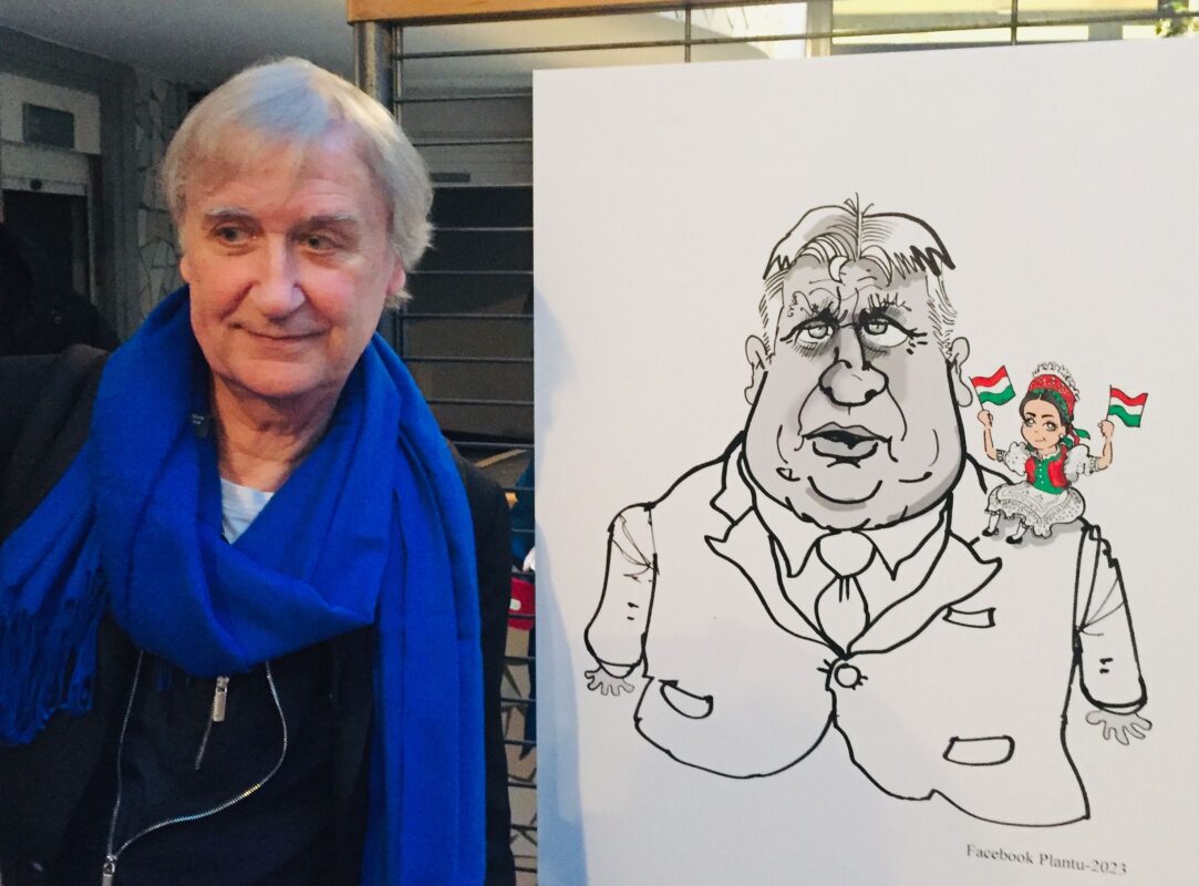 A 71 éves, örökifjú francia karikaturista erős felütéssel kezdte bemutatkozását: a Francia Köztársaság budapesti nagykövetének köszöntője után