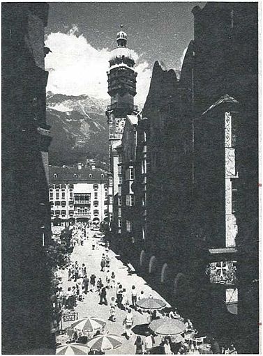 Az innsbrucki Herzog-Friedrich-Straße; az előtérben (jobbra) a Fehér Kereszt szálló