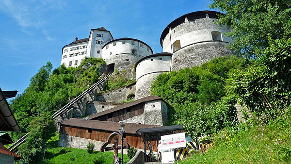 Kufstein dölyfös vára, előtérben az egykori börtön, a Császár-torony