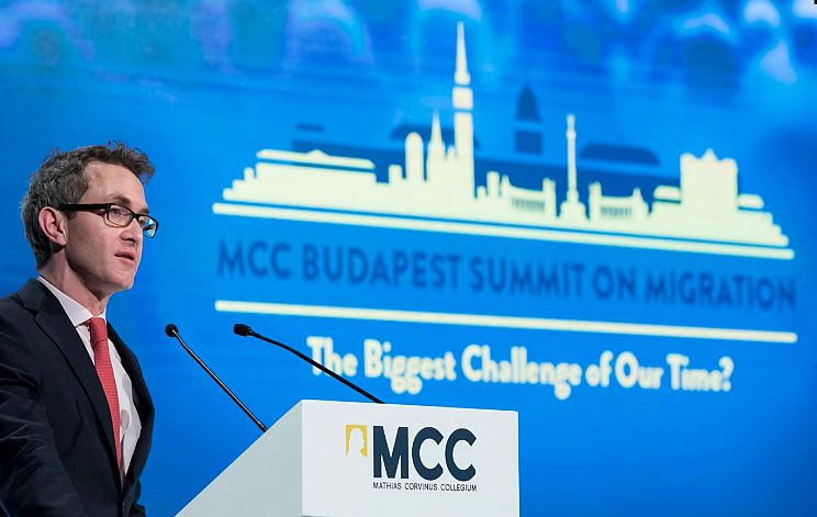 Douglas Murray beszédet mond a Mathias Corvinus Collegium migrációs konferenciáján a Várkert-bazárban 2019. március 22-én.