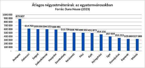 A Duna House tavalyi értékesítési adatai alapján elmondható, hogy az egyetemi városokat tekintve a legdrágább megoldás fővárosi ingatlan vásárlása (879 ezer Ft/m2). A második legdrágább Debrecen: 614 ezer Ft/m2-vel; a harmadik helyen Szeged áll: 599 ezer forint a lakások ára négyzetméterenként. Az idei januári statisztika alapján Budapest belvárosában átlagosan 1 millió forintnál is többet kértek a lakások négyzetméteréért; ugyanennyibe kerültek a használt téglaépítésű otthonok a budai oldalon is; a pesti átlag 806 ezer forint volt.