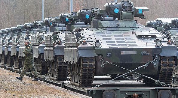 Az EU-nak minden szükséges eszközzel támogatnia kell Ukrajnát, hogy megnyerje a háborút – hangsúlyozzák az EP-képviselők a ma elfogadott állásfoglalásukban. Az EU-nak és a NATO szövetségeseknek évente legalább a bruttó hazai termékük 0,25 százalékával kellene támogatniuk Ukrajnát katonailag. (A nyitó képen: Marder gyalogsági harcjármű Ukrajnának. Forrás: Armin Weigel/dpa)