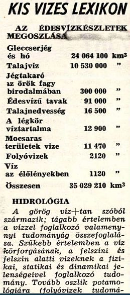 Az ENSZ az 1981–90 közötti időszakot a víz évtizedévé nyilvánította. Nemsokára a félidőhöz érünk. Célszerű lenne mindenkinek a maga területén és környezetében megvizsgálnia: mit tett, ha tett egyáltalán valamit, a vízért, védelméért, tisztaságáért. Vagy csupán használta, mert a legtermészetesebb – és a legolcsóbbnak tetsző – nyersanyag?