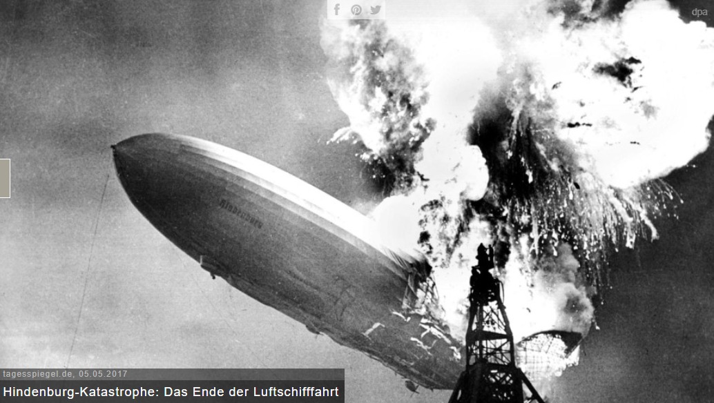 A Hindenburg léghajó katasztrófája (a kép forrása: tagesspiegel.de)
