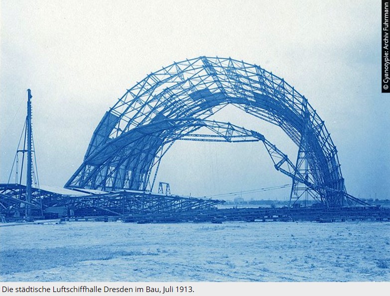 Épül a drezdai városi léghajócsarnok (1913). A kép forrása: Technische Universität Dresden