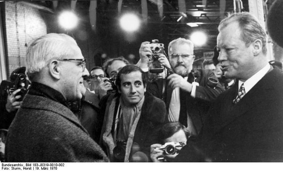 Amikor 1970. március 19-én Erfurtban találkozott a keletnémet kormányfővel, a szállodája előtt összegyűlt tömeg – a kényszerűségből visszafogott rendőri intézedések közepette – egy emberként éltette Willyt. Az ugyancsak Willi (de i-vel) Stoph, berlini miniszterelnök pedig megszégyenülten vonult vissza az ablaktól a függöny mögé…