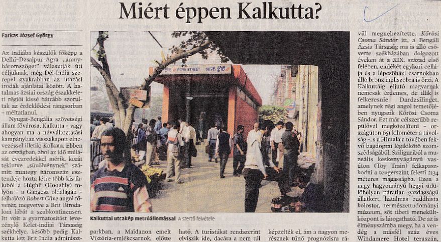 Az európai turisták, köztük a magyarok úti céljai – a Földközi-tenger melléke vagy éppen Thaiföld – mellett kissé háttérbe szorult India. Pedig ez a hatalmas ország nem csak azért érdemel figyelmet, mert immár a Föld legnépesebb állama. Szerzőnk, e szubkontinenst közelebbről ismerő külpolitikai újságíró a Népszabadság 2008. december 22-i számában igyekezett kedvet csinálni az érdeklődőknek Bengália felkereséséhez… (A nyitó képen: a Bengáli Ázsiai Társaság  ódon székháza, itt dolgozott valaha Kőrösi Csoma Sándor…)