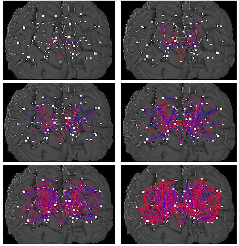 Az ELTE-s kutatócsoport doktori hallgatója, Kerepesi Csaba a webszerver publikálása után, rendkívül meglepő észrevételt tett. Azok az élek, amelyek a vizsgált alanyok 100%-ában jelen vannak, nyilvánvalóan kevesebben vannak, mint azok az élek, amelyek csak az alanyok legalább 75%-ban vannak jelen, és ezek kevesebben vannak, mint azok, amelyek legalább 50%-ban vagy mondjuk legalább 25%-ban vannak jelen. Tehát ha tekintjük azokat az agyi kapcsolatokat, amelyek az alanyok legalább x százalékában vannak jelen, és az x-et csökkentjük 100-tól 1-ig, akkor egyre több kapcsolatot kapunk, egyre több él lesz a gráfunkban.