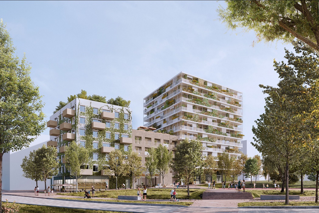 Kéthektáros park köré épül Bécs új lakónegyede az osztrák főváros 3. kerületében, 11 hektáron. A Village im Dritten-ben 2026-tól több mint négyezren találhatnak új otthonra. Az 1900 lakásból 800 önkormányzati lesz, az egész negyed a fenntarthatóság és a közösség szellemében épül. (Nyitó kép: lakóépület és park látványterve © Huss Hawlik Architekten)