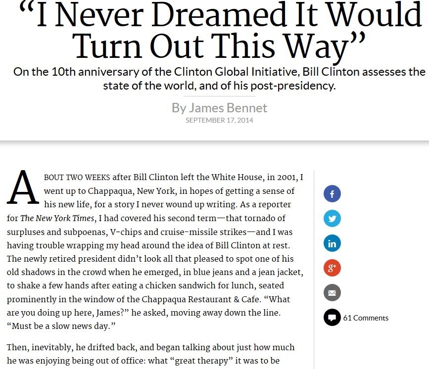 Bill Clinton volt amerikai elnök az Atlantic Magazine folyóiratnak adott interjúban is kitért Magyarországra, amikor arról beszélt, hogy a kölcsönös függés rendszerének erősítésével kell feltartóztatni az újjáéledő nacionalizmust. Mint mondta: a világban jelenleg három kormányzati forma verseng egymással. Közülük az egyik, amikor az autokrata vezetés megpróbál előnyt szerezni a piaci lehetőségekből. Ez pontosan az, amit Orbán Viktor meghirdetett a minap: a tekintélyelvű tőkés rend.