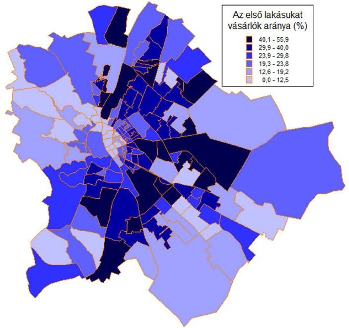 Összegezve: az egyes fővárosi kerületek között hatalmas árkülönbségek adódhatnak. A belvárosi és a budai központi kerületekben többszörös áron lehet eladni hasonló paraméterű lakásokat, mivel döntő az ingatlan elhelyezkedése. Ennek megfelelően a belvárost a befektetők „uralják”, akiknek anyagilag nem okoz akkora megterhelést az ingatlan ára, mint például egy első lakását vásárló fiatalnak. A fiatalok jellemzően kisebb lakást vásárolnak azért, hogy ne kelljen nagyon elszakadniuk a belváros kínálta lehetőségektől és a nyüzsgő élettől. A város szélén ugyanis (ahogy az 1. ábrán is látszik) sokkal nagyobb lakást is vásárolhatnának ugyannyi pénzből. A kertvárosias területekre már jellemzően a családosok költöznek, így ők a külvárosok gyakori lakói.