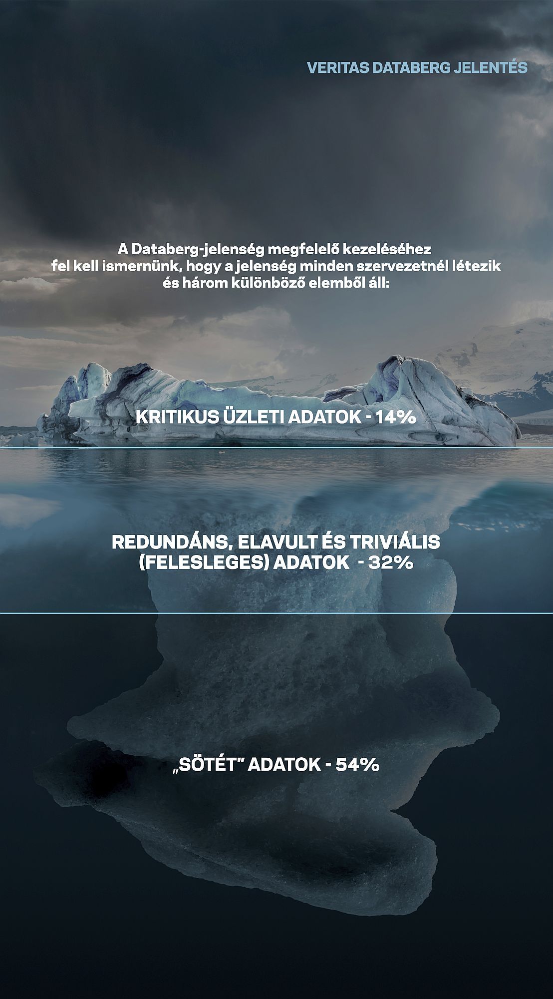 A Veritas 1500 személyt kérdezett meg térségünk 14 országában arról, hogy milyen kihívásokkal szembesülnek a vállalati adatok értékes üzleti információvá alakítása közben. A jelentés egy új jelenséget is bemutat, amelynek a jéghegyekhez hasonló tulajdonságai miatt a Databerg nevet adták a Veritas szakemberei. Eszerint a tárolt adatok három fő típusát különböztetik meg a szakemberek: