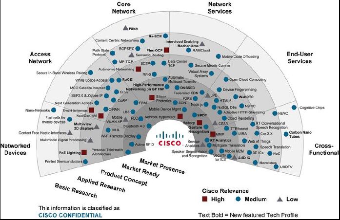 - Az Internet of Everything („a dolgok internete” – IoE) és M2M kapcsolatok növekedése – Az IoE-trend kézzelfogható növekedést mutat, az M2M kapcsolatok száma pedig háromszorosára növekszik a következő 5 év során, így 2019-re 10,5 milliárd ilyen kapcsolat lesz. Ennek oka az IoE széles körű elterjedése egyrészt a különböző ágazatokban (mezőgazdaság, egészségügy, gyártás, kiskereskedelem, szállítmányozás), másrészt az otthonokban (videós biztonsági berendezések, okosmérők, világítás és hőmérséklet-szabályozók stb.).