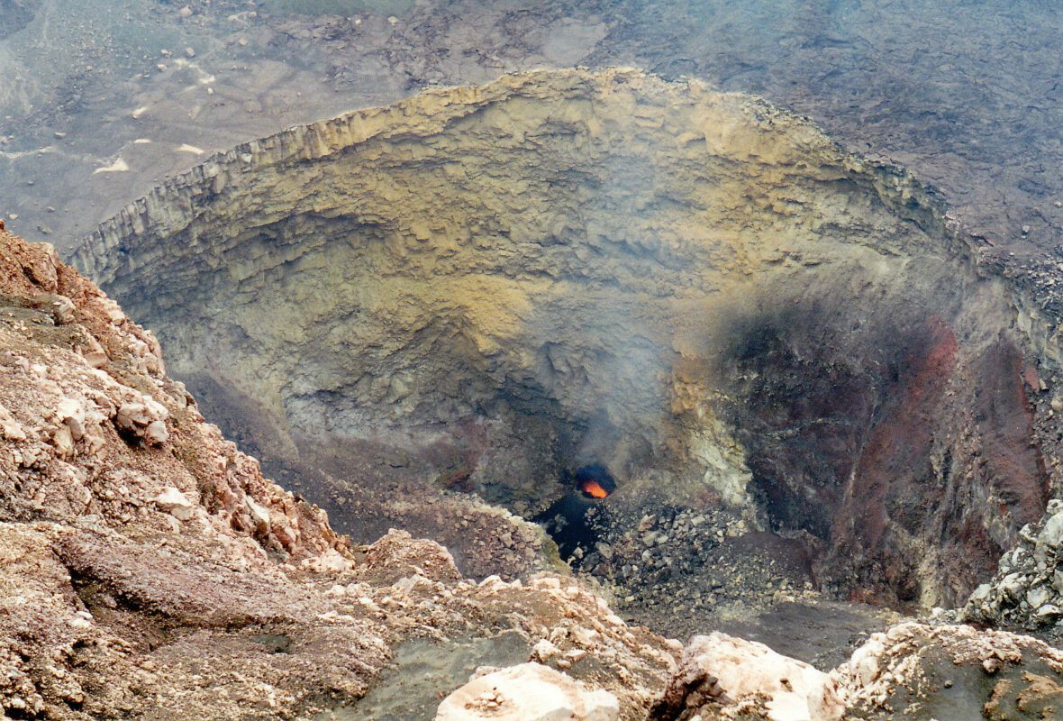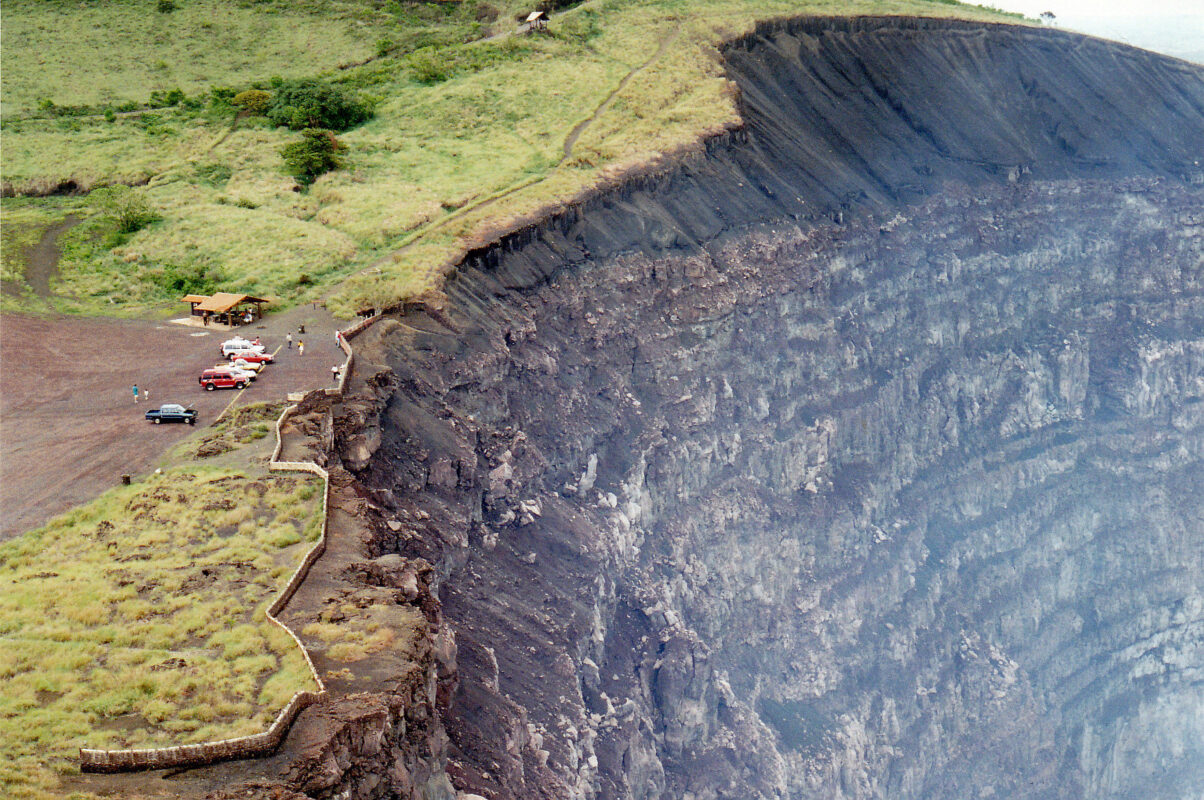 Ha a képet gondosan szemügyre vesszük, látható az apró gépkocsik mellett húzódó hatalmas vulkáni gödör mérete.