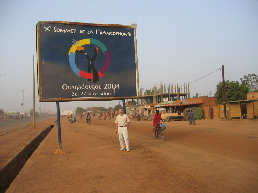 A 2004. év vége felé, novemberben ismét Afrikába vezetett az utam. Ezúttal Bársony András külügyi államtitkár kíséretében részt vettem a Frankofónia Nemzetközi Szervezete (OIF —> Organisation internationale de la Francophonie) 10. csúcstalálkozóján, amelyet a függetlenségét ugyancsak 1960-ban elnyert, Malival délről határos Burkina Faso (korábbi nevén Felső-Volta ) jó kétmilliós fővárosában, Ouagadougouban tartottak.