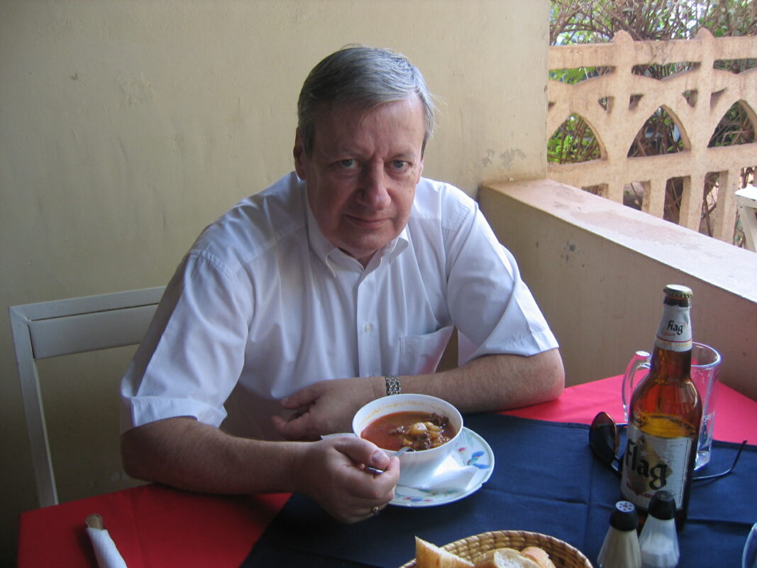 A csúcstalálkozó résztvevőinek szétosztottak egy listát azokról a vendéglőkről, amelyeket a szervezők a külföldi küldöttek számára ajánlottak. Ily módon jutottunk el Bársony Andrással egy osztrák tulajdonú étterembe, ahol – a Szahara kellős közepén – gulyáslevest fogyasztottunk… Annyira bizarr volt a látvány, hogy az étkezést fényképen is megörökítettem.