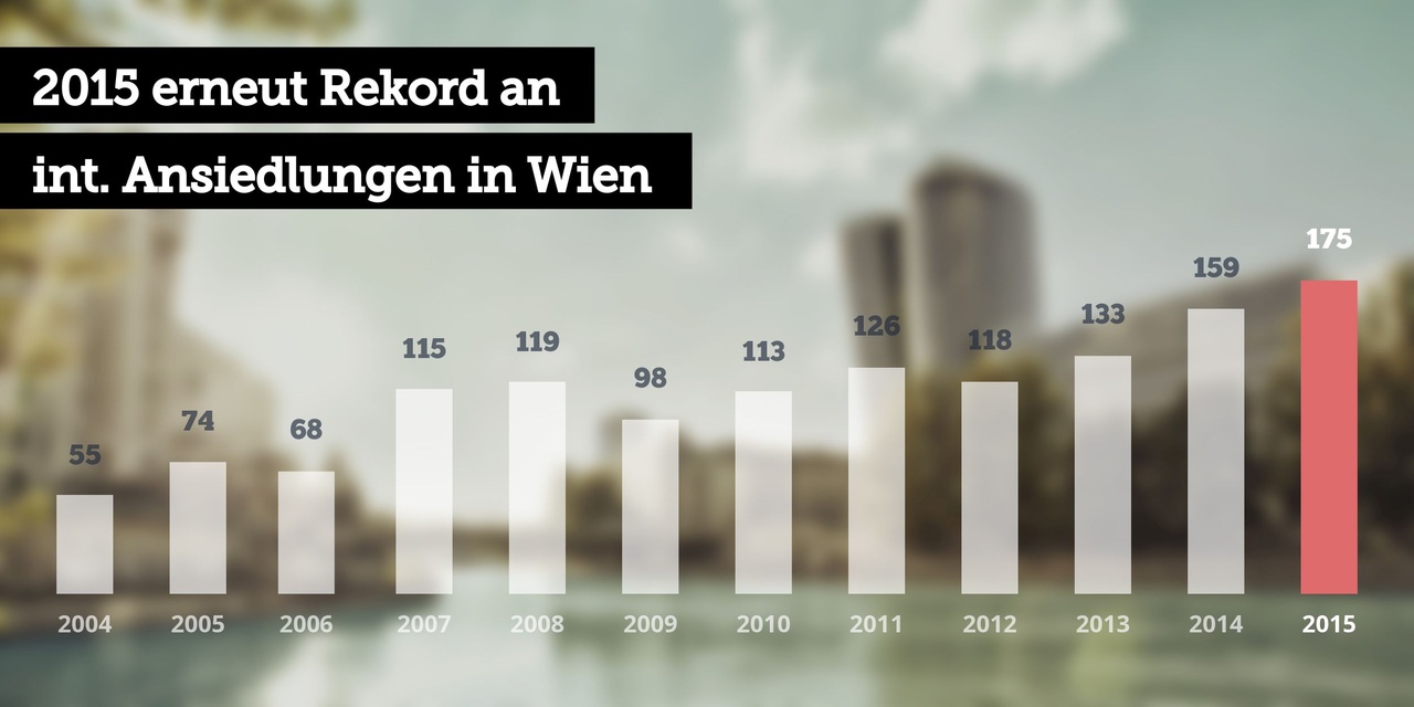 Ezzel az eredménnyel Bécs ötször annyi nemzetközi vállalkozást tudott megnyerni magának, mint a második helyezett Karintia, ahol 36 külföldi vállalkozást alapítottak. A listát Salzburg (25), Tirol (20) és Alsó-Ausztria (18) folytatja. A 175 külföldi cég összesen 1450 új munkahelyet létesített és 630 millió eurót fektetett be.