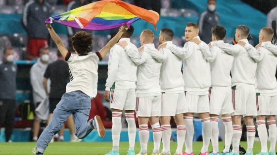 A The Athletic pedig szinte a magyar–német meccsel egyidőben számolt be arról, hogy egy német szurkoló szivárványos zászlóval a kezében rohant be a pályára, miközben a magyar himnuszt játszották. A többi német pedig lelkes tapssal fejezte ki egyetértését.