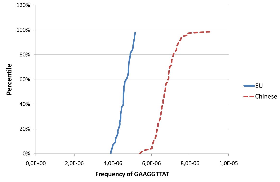 Az ELTE PIT Bioinformatikai Csoportjának kutatói, Szalkai Balázs doktorandusz és Grolmusz Vince egyetemi tanár, olyan rövid DNS-szekvenciákat találtak, amelyek gyakorisága nagy eltérést mutat európai és kínai minták között. Így például az ATAATGGC sorozat sokkal gyakrabban fordul elő kínai, mint európai mintákban (az A az adenin, a T a timin, a G a guanin és a C a citozin nukleotidot jelöli). A rövid DNS-szakaszok statisztikailag jellemző különbségeinek leírásával lehetőség nyílhat olyan egyszerű diagnosztikai eszközök kifejlesztésére, amelyek az emberi enterotípusokat meg tudják határozni.