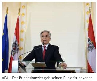 Faymann will indes völlig aus der österreichischen Politik ausscheiden und spekuliert mit einem Job in Brüssel. Laut einem Interview in der Tageszeitung „Österreich” will er sich überlegen, „etwas im Rahmen der EU” zu machen. Kanzleramtsminister Josef Ostermayer habe ihm zudem versprochen, in der Regierung zu bleiben.