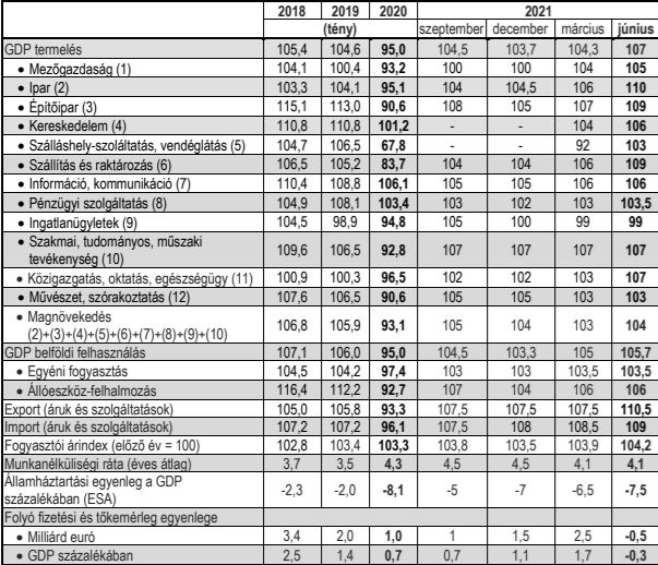 A GDP várhatóan már az idén meghaladja a 2019. évi szintet, az ingatlanszektor kivételével minden ágazatban növekedés várható. Az iparban a bruttó termelés kissé 10% fölött, az építőiparban 8-9%-kal bővülhet, a kiskereskedelmi forgalom növekedése 5% fölött lehet. Az áru- és szolgáltatásexport várhatóan mintegy 1,5 százalékponttal bővül gyorsabban az importnál, a cserearányok, főleg az olaj árának emelkedése miatt mintegy 1%-kal romlanak. A teljes külkereskedelmi aktívum 10 milliárd euró körüli lehet.