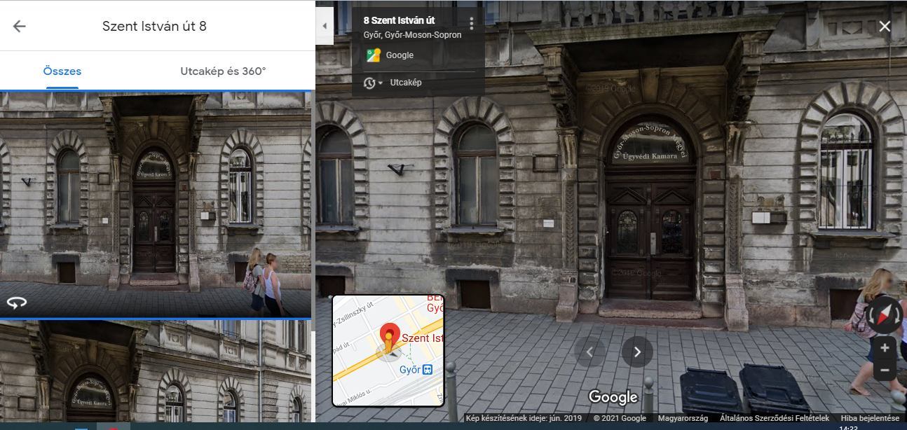Látszólag rendbe tették a Szt. István út 10. alatti ügyvédházat, igaz, csak a homlokzatát, holott legalább három oldala látszik az épületnek. – Ellenpárjára már nem kerítettek sort (kapuja fölött nagy betűkkel áll: „ügyvédi kamara”);