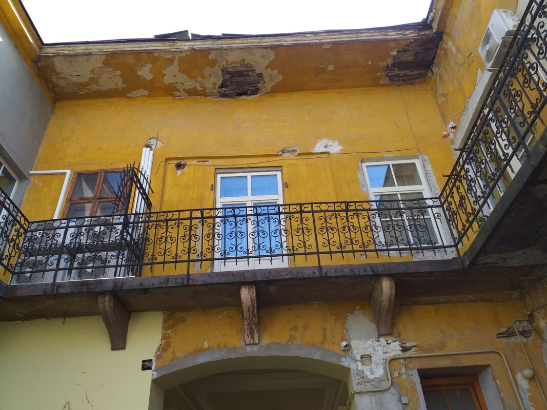 A végére hagytuk a győri promenád egyik „ékét”: Baross utca 6. számú épület sem először szerepel lapunkban: elsősorban zárt erkélyét és környékét a fekete penész zabálja hosszú évek óta.