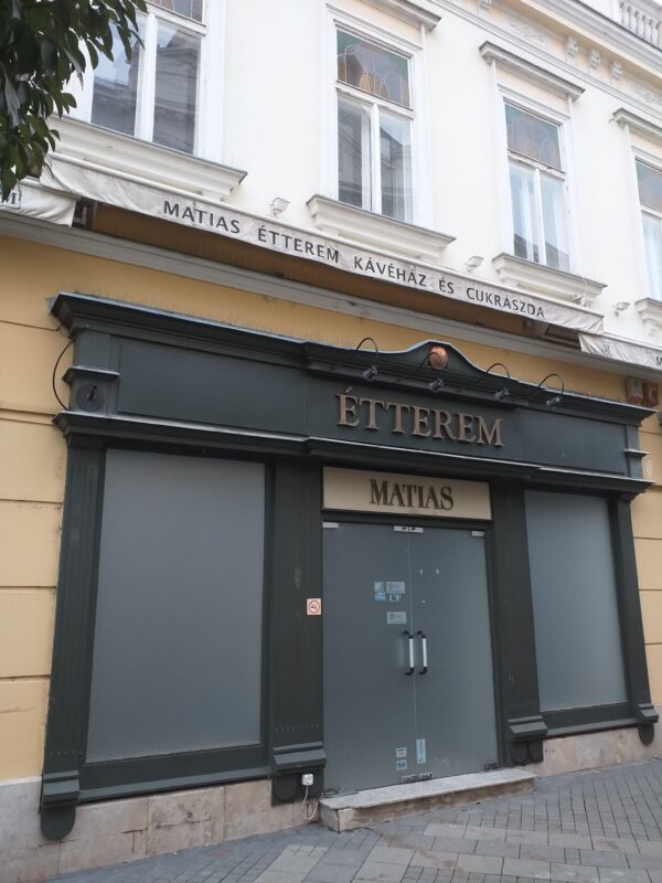 A Kisfaludy utca sarkán áll az éppen 50 hónappal ezelőtt „végleg” bezárt Matias étterem és cukrászda. Állítólag két (vendéglátó-ipari) szomszédvár parancsnokai párbajának az eredménye. Lapunk így írt erről 2017 augusztusban: