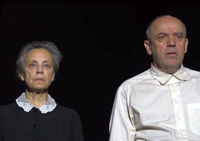 A zöld háttér előtt a fényben mosolyog a „hidegszemű” Pék Mária fehér csipkegalléros fekete ruhában, a „mértéktartó, tisztelettudó” Hábetler János fehér ingben, fekete nadrágban. Fénykép a majdani gyerekeknek, az unokáknak, az utókornak. A Katona József Színház színpadán Szirtes Ági és Bezerédi Zoltán a Rozsdatemető 2.0 előadásában. (Nyitó képünkön: Pék Mária a lányaival: Szirtes Ági (középen), Péter Kata és Rujder Vivien. / Fotók: Katona József Színház.)