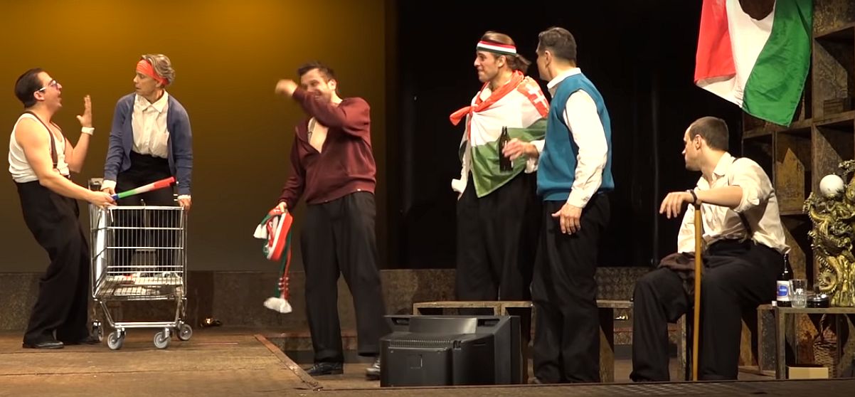 Tasnádi rendkívül bonyolult szülő – gyermek viszonyokat állít fel, egyre másra derül ki, legföljebb az anya biztos. Erre a különös egymásra feleltetésre játszik rá a rendezés, ahogy az új generációban hasonlatosságokat, folyamatosságokat sejtetve visszahozza a régi szereplőket. Az egykori Zentayból Hábetler Norbi (Mészáros Béla) lesz, Reich bácsiból Zentay Nimród (Szacsvay László), Híres Istvánból Csacsa (Kovács Lehel) és ugyanígy a felnövekvő fiúk szerelmei, Pék Mária a fiatal Sós Krisztaként (Szirtes Ági), Reich Kató Kárpáti Orsiként (Mészáros Blanka) jelenik meg. Rohanóbb, harsányabb, színesebbre mázolt, felszínesebb ez a világ Tasnádi ábrázolásában, mint a korábbi volt. És kevésbé árnyaltak lakói is. Tasnádi karakterei nem olyan sűrűk, mint Fejes alakjai voltak, de azt nagyon pontosan tudják érzékeltetni, igényeik mások, talán többet akarnak, legalábbis „gorenje-szinten”, de életük éppoly üres, éppoly értelmetlenül tudattalan, mint elődeiké. Lerohanhatják itt Csehszlovákiát, jöhet itt rendszerváltozás, őszödi beszéd, társadalmi krízis, tüntetés, megostromolhatják a televízió székházát, lehet drámai kilakoltatás, amikor éppen az egykori szomszéd kerül utcára, ugyanúgy elmegy mellettük a történelem, ugyanúgy nem értenek és nem is akarnak érteni semmit a világból, amelyben élnek, mint felmenőik.