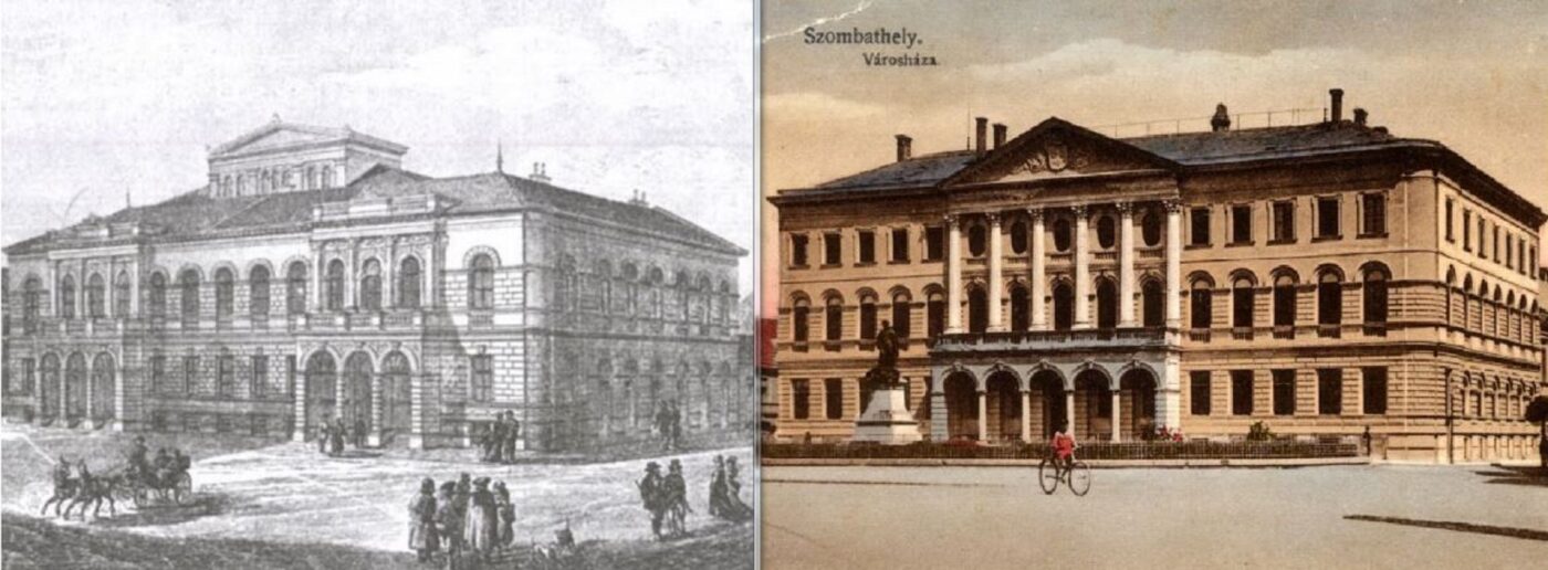 A volt városháza és színház helyén álló egykori pártszékház falán elhelyezett emléktáblát – a városháza és színház épületének állítana emléket – a későbbi változat képével díszítették, aminek már semmi köze sem volt Hauszmann palotájához…