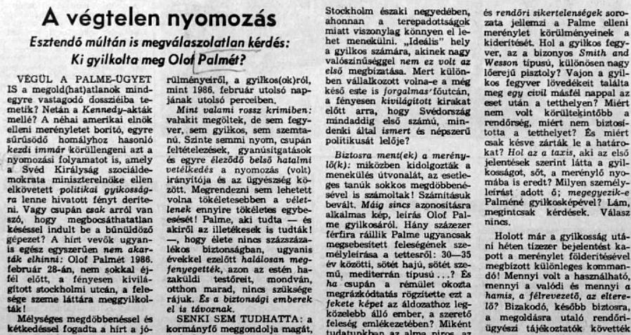 A végtelen nyomozás – Esztendő múltán is megválaszolatlan kérdés: Ki gyilkolta meg Olof Palmét?