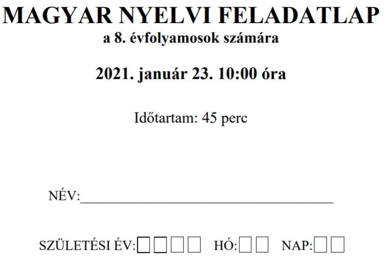 A fenti halandzsaszövegben a felvételiző diákoknak két példát kellett találniuk a többes számú főnévre, keresniük egy birtoktöbbesítő jellel ellátott szót, valamint egy darab egyes szám harmadik személyű birtokos személyjellel és határozóraggal ellátott szót, végül pedig, két példát a többes szám harmadik személyű, múlt idejű igére.