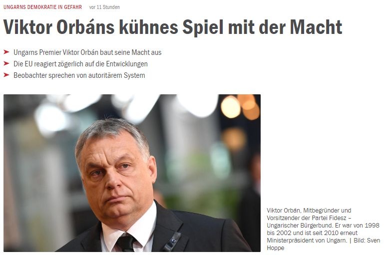 A német Südkurier is ennek kapcsán ad sok részletre kiterjedő politikai kórképet Orbán Magyarországáról. Krekó Péter politológus szerint van miért aggódnia hazánknak, mert a miniszterelnök már nem ismer határokat. A korrupciós ügyeket a magyar ügyészség nem vizsgálja a kormány hatalomban tartása végett. A cikkben kéz a kézben mosolyog a magyar kormányfő és Vlagyimir Putyin, ellenben a nép ellensége Soros György lett.