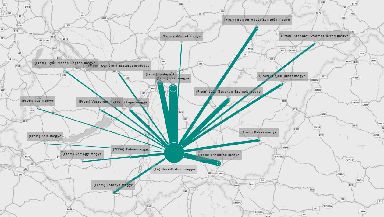 Bács-Kiskun megyei állásokra jelentkezők aránya megyékre bontva