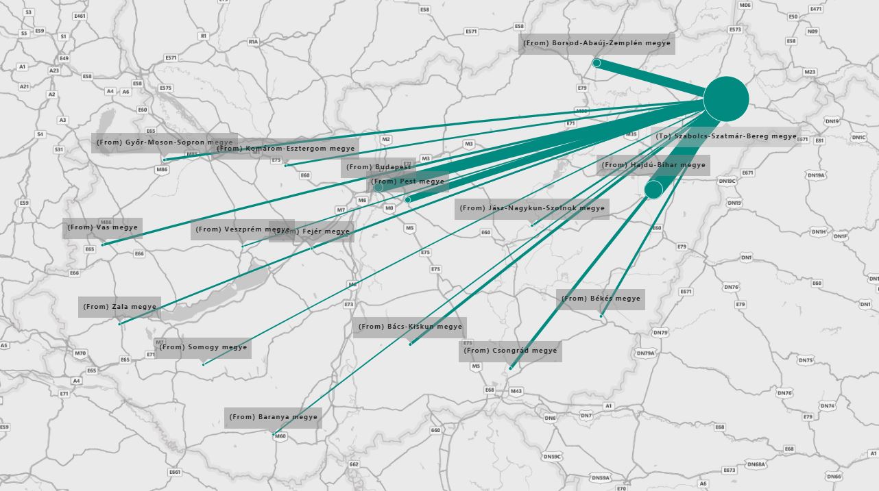 Szabolcs-Szatmár-Bereg megyei állásokra jelentkezők aránya megyékre bontva