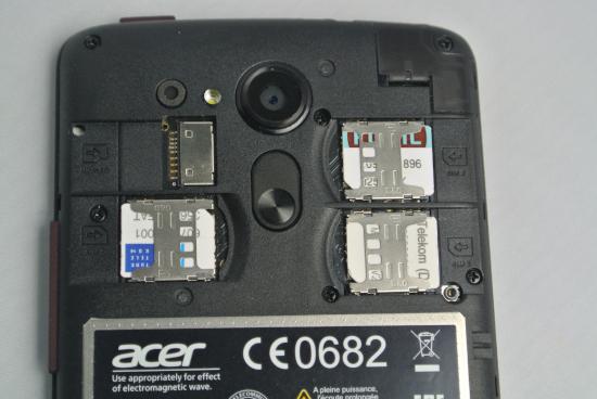 Acer Liquid E700 Trio: a microSD mellett még három kártya befogadására alkalmas a készülékház, amely – méretét tekintve – helyet ad még annak a 3500 milli-amper-órás lítium-ion akkunak, amelyik különösen hosszú készenléti időt (1440 órát, 60 napot!) ígér a tajvani gyártó okostelefonja reménybeli vásárlóinak, használóinak. Éppen egy álló napig (24 óra hosszat) lehetne egyvégtében beszélni vele (ezt a lehetőséget nem teszteltük), vagy 100 órán át zenét hallgatni…
