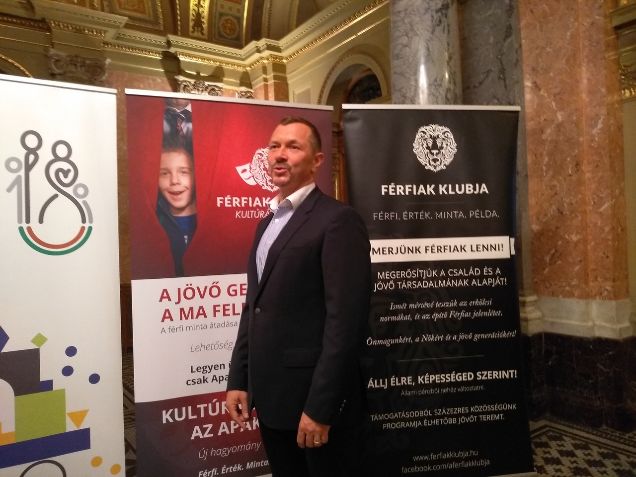 A férfiak vegyenek részt aktívabban a gyerekek kultúrára nevelésében – erről az eredeti kezdeményezésről hallhattunk a Magyar Állami Operaházban. Nemzetközi felmérés mutatja, hogy egyre kevesebb a férfiminta a gyermekek nevelése közben. A házasságok 60–70 százaléka válással végződik. A városiasodás, a túl sok munka egyaránt csökkenti a férfiak jelenlétét a családban. A pedagóguspálya elnőiesedése is ebbe az irányba hat. (Bedő Imre, a Férfiak Klubja alapítója / a szerző felvétele.