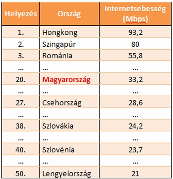 Országok letöltési sebesség szerint (az első három helyezett + kelet-közép-európai régió)