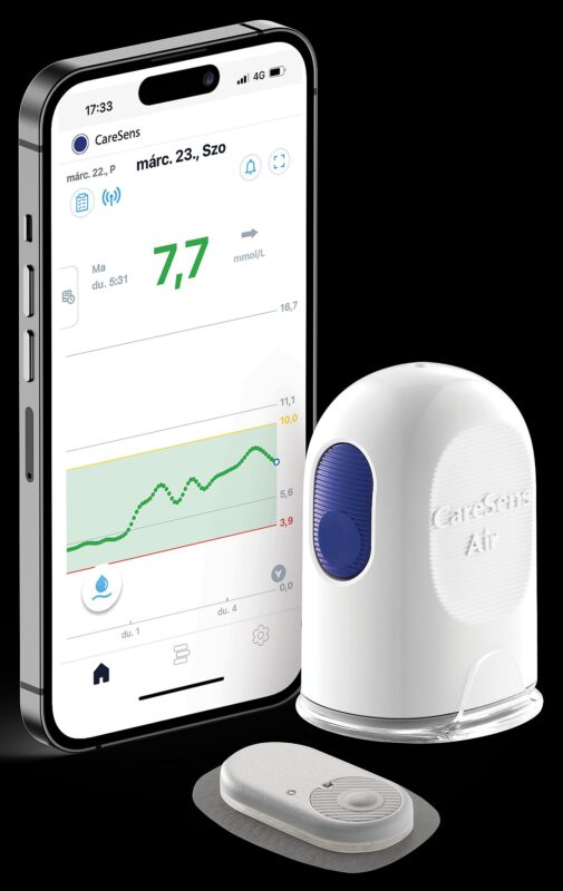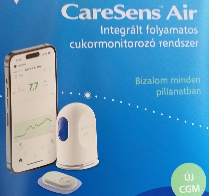 Ezekben a napokban a magyar hi-tech vállalat a nemzetközileg elismert dél-koreai i-SENS orvostechnikai céggel – a fejlesztésben szorosan együttműködve – egy második generációs, folyamatos cukormonitorozó rendszert vezet be a magyar piacra. A CareSens Air CGMS (continuous glucose monitoring system) elődjéhez képest nem egy külön szenzorból és távadóból áll, hanem már integrált formában vásárolható meg. Mivel ez egy előre összeszerelt rendszer a használata is jóval egyszerűbb az elődjénél: a fájdalommentes felhelyezést követően mindössze egy gombnyomásra van szükség a rögzítéséhez. A vékony, könnyű érzékelőnek köszönhetően viselete kényelmes, ráadásul vízálló is, így akár fürdés vagy úszás közben is pontosan méri és továbbítja a cukorértékeket.