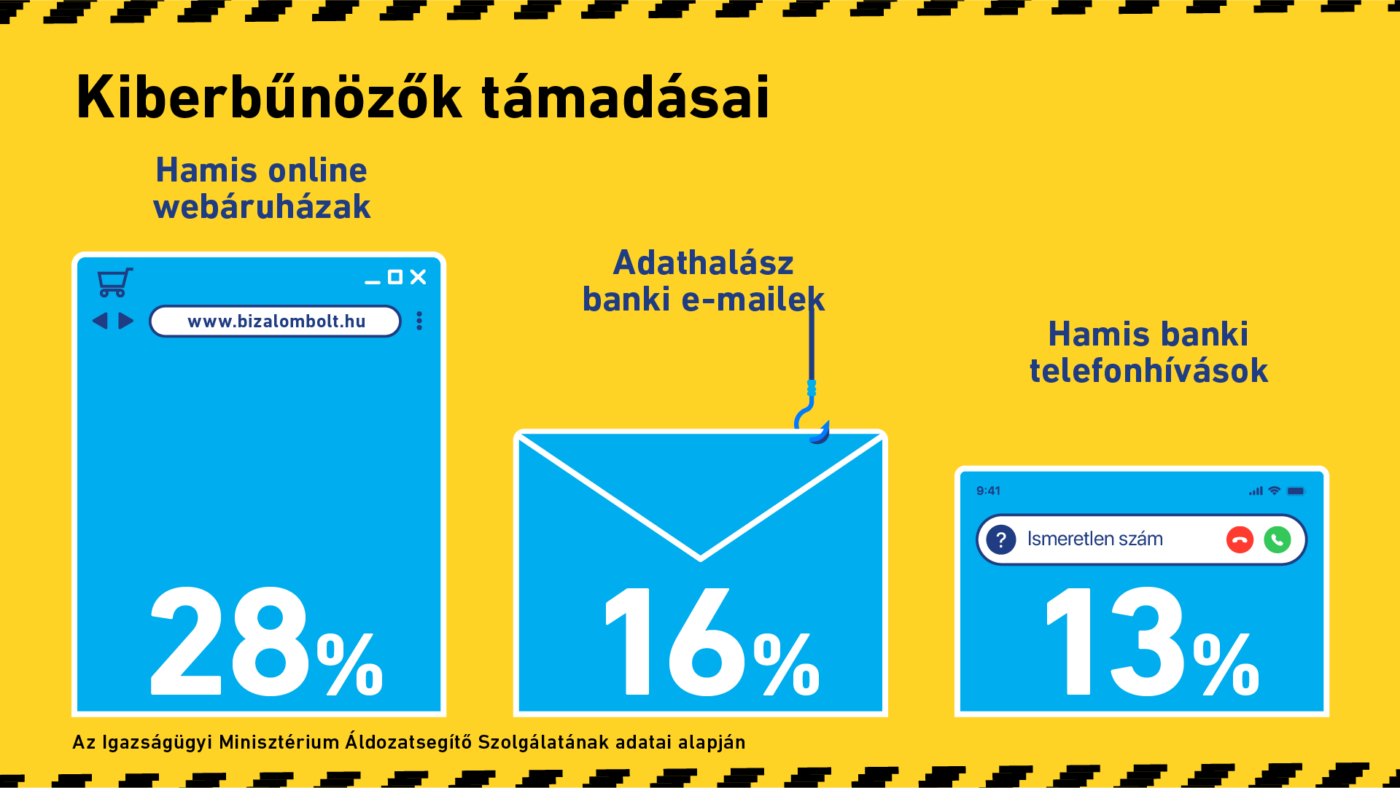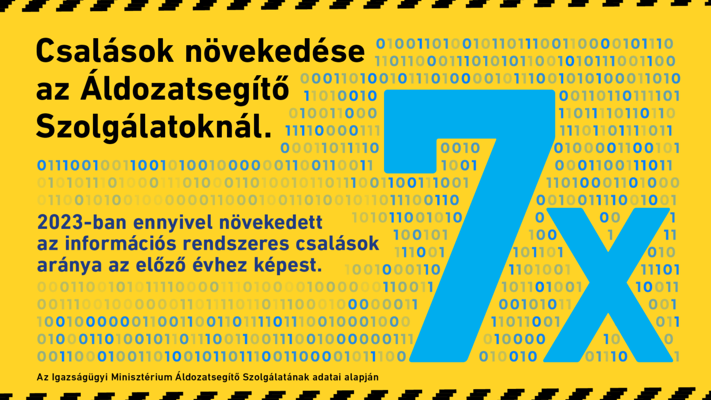 A kiber-bűncselekménnyel kapcsolatos esetek 13%-hamis „banki” telefonhívás, hatoda adathalász „banki” email, 28%-a pedig hamis online webáruházakhoz, ajánlatokhoz köthető. Az információs rendszer felhasználásával elkövetett csalások aránya pedig a 2022-i adatokhoz képest 7-szeresére emelkedett – mondta Diamantopoulosné dr. Kenyeres Gabriella, az Igazságügyi Minisztérium igazságügyi szakmai irányítási főosztály vezetője. Tavaly az Áldozatsegítő Szolgálathoz beérkezett megkeresések 7%-a tartozott a kiberbűnözés kategóriájába.