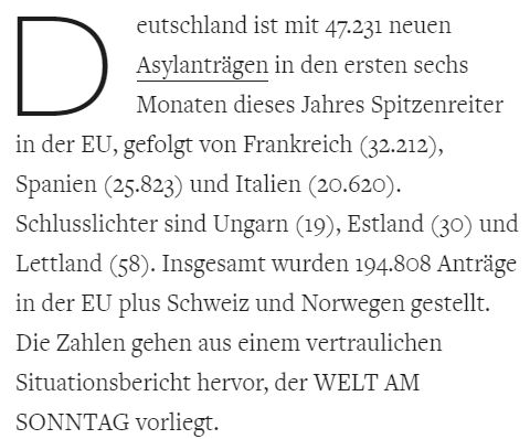 A számok alapján a német kormány egyre kevésbé érti, hogy az olaszok miért próbálják menekültek átvételére rábírni, amikor ekkora létszámmal maguk is meg tudnának birkózni. Egyébként a németeknél a kérelmezők 36%-a szír, 18%-a afgán és nem egészen 7%-a iraki.