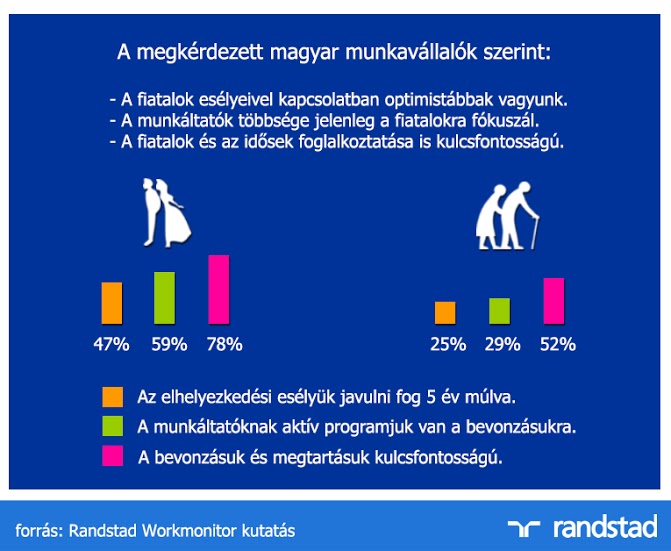 A megkérdezettek fele szerint a vállalatok sikeres hosszú távú működéséhez meg kellene tartani a nyugdíj felé közelítőket. A magyarok többsége úgy véli, az 55 évesnél idősebbek is ugyanolyan hatékonyan képesek dolgozni, mint a fiatalok, és betegszabadságot sem vesznek ki gyakrabban, mint a 35 évesnél fiatalabbak. Ráadásul a 45–65 éveseknek a legmagasabb a túlórázási hajlandósága, hiszen nekik önmaguk mellett családjukról és a nyugdíjas éveikről is gondoskodniuk kell.