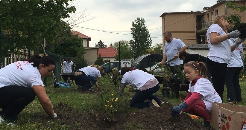 A felnőttek cserjéket, fákat ültettek, illetve a focipályát is rendbe tették: szintet egyenlítettek, megjavították a kaput és kicserélték a hálót is.