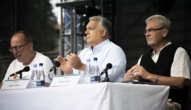 Az ukránok megtámadták a szegény, kicsi, magyar OTP-t – állította Tusványoson a magyar miniszterelnök, visszautasítva az ukránok lépését. Orbán Viktor szerint megbillent a szuverenisták és föderalisták közti egyensúly az EU-ban. (A nyitó kép forrása: MTI/Miniszterelnöki Sajtóiroda/Benko Vivien Cher)