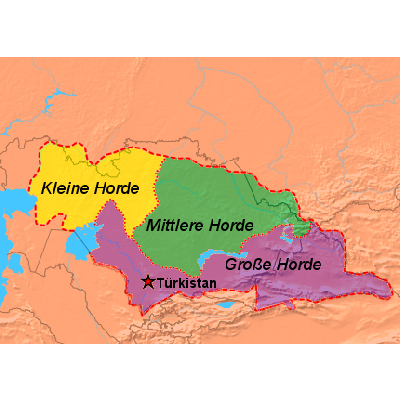 A monda szerint a kazahok ősapjának három fia volt, tőlük származik népük három fő ága, a nagy, a középső és a kis horda (ezek egykor a mai Kazahsztán keleti, középső, ill. nyugati részén éltek). A hordák kisebb csoportokból álltak. A legkisebb egység az együtt táborozó nagycsalád volt. A törzsi hierarchia különféle szintjein voltak ugyan főnökök, de a kazah nemzet – még az egyes hordák is – ritkán egyesült egyetlen vezető alatt.