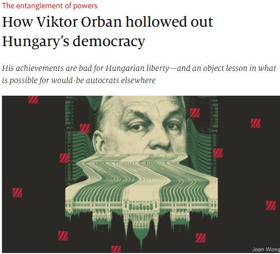 A The Economist vezércikke arra figyelmeztet, hogy mostanság a demokráciát leginkább belülről, lassan, a nép nevében fojtják meg, amint azt a Fidesz példája bizonyítja. A párt megszállta a kormány munkájának felügyeletére hivatott intézményeket, uralja az üzleti életet, ellenőrzi az igazságszolgáltatást, bekebelezte a sajtó nagyrészét és manipulálta a választási törvényt. Orbánnak mindehhez nem kellett jogot sértenie, a változtatásokhoz támaszkodhat a parlamenti többségre. És még csak az sem szükséges, hogy a titkosrendőrséggel vitesse el az ellenfeleket az éjszaka kellős közepén, miután a média vagy az adóhivatal útján is engedelmességre lehet kényszeríteni őket. Vagyis Magyarország formálisan demokrácia, ám voltaképpen immár egypártrendszer. A hasonszőrű erők másutt is kikezdik az államot. Nem csupán a fiatal demokráciának számító Lengyelországban, ahol a Jog és Igazságosság utánozni igyekszik a Fideszt, de Nagy-Britanniában és az USA-ban is.