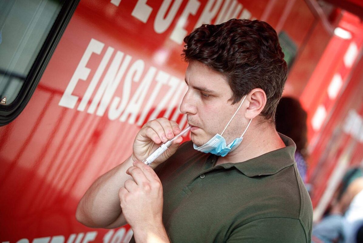 Tegnap óta hetente önkéntesen tesztelhetik koronavírus-fertőzésre a bécsi óvodák és iskolák dolgozóit. A PCR-teszt toroköblítéses mintavételen alapszik, a város ingyen bocsátja az intézmények rendelkezésére. (A képen: toroköblítéses mintavételen alapuló koronavírus-teszt. Foto: PID/Schaub-Walzer)