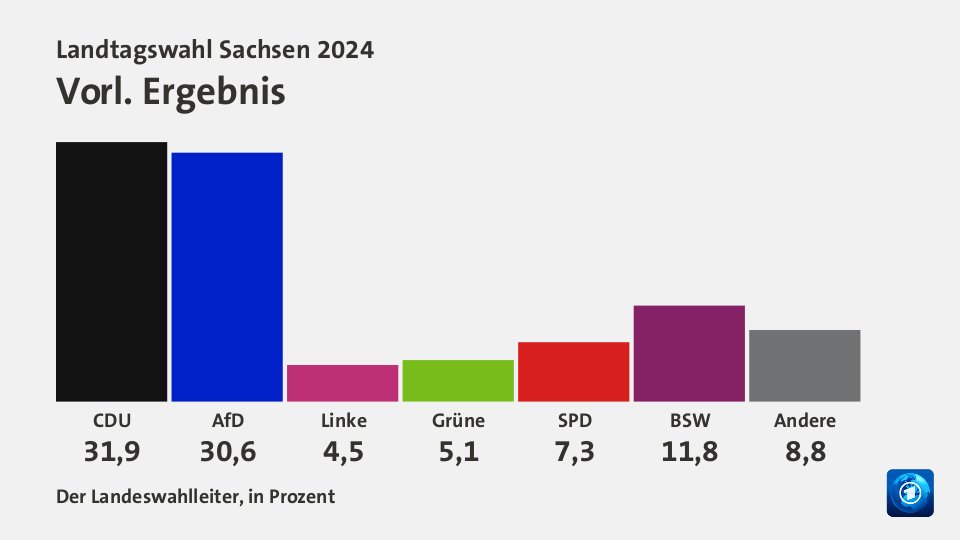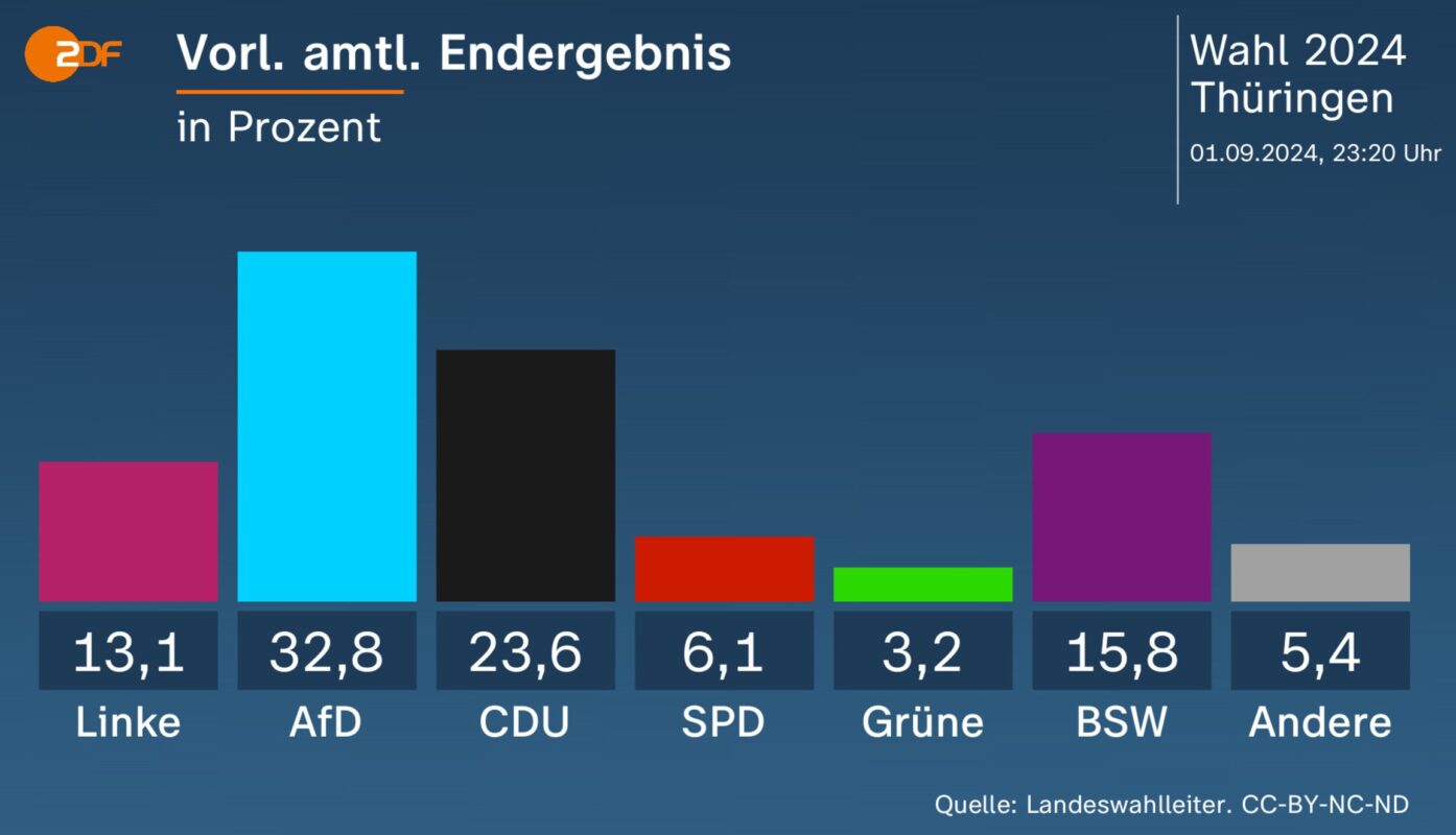 Vasárnap választásokat tartottak Szászországban és Türingiában. Az eredmények messzi túlmutatnak a tartományok határain. A voksolás nagy vesztesei a jelenlegi, berlini kormánykoalíciós pártok (szocdemek, szabaddemokraták, zöldek) és egyértelmű nyertesei a szélsőjobboldali Alternatíva Németországnak, illetve szélsőbaloldali Sahra Wagenknecht Szövetség (BSW).