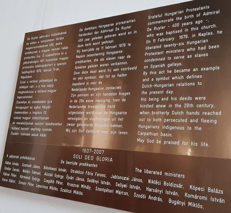 Az ugyancsak hollandiai Vlissingenben 2007. szeptember 24-én a helyi nagytemplom előtti oszlopon táblát lepleztek le azoknak a magyar gályarab-prédikátoroknak az emlékére, akiket Michiel de Ruyter kiszabadított. A vlissingeni református gyülekezet ezeket a lelkészeket utólag felvette saját egykori prédikátorainak sorába, és